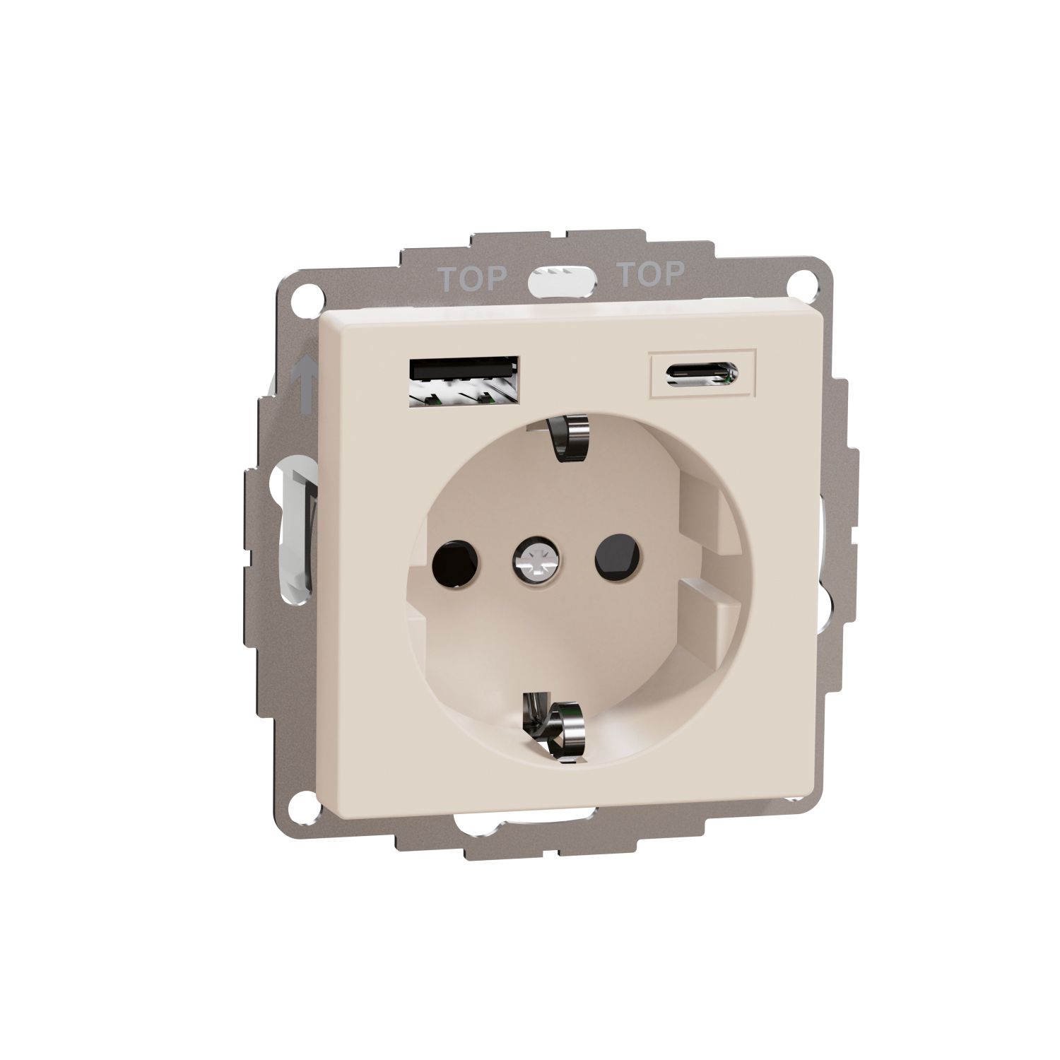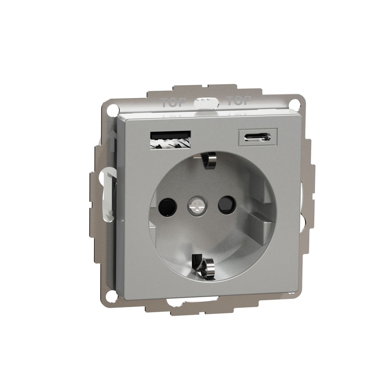 Merten Steckdose 1f polws glz 1USB-A 1USB-C UP m.BS Mit erhöhtem Berührungsschutz IP20