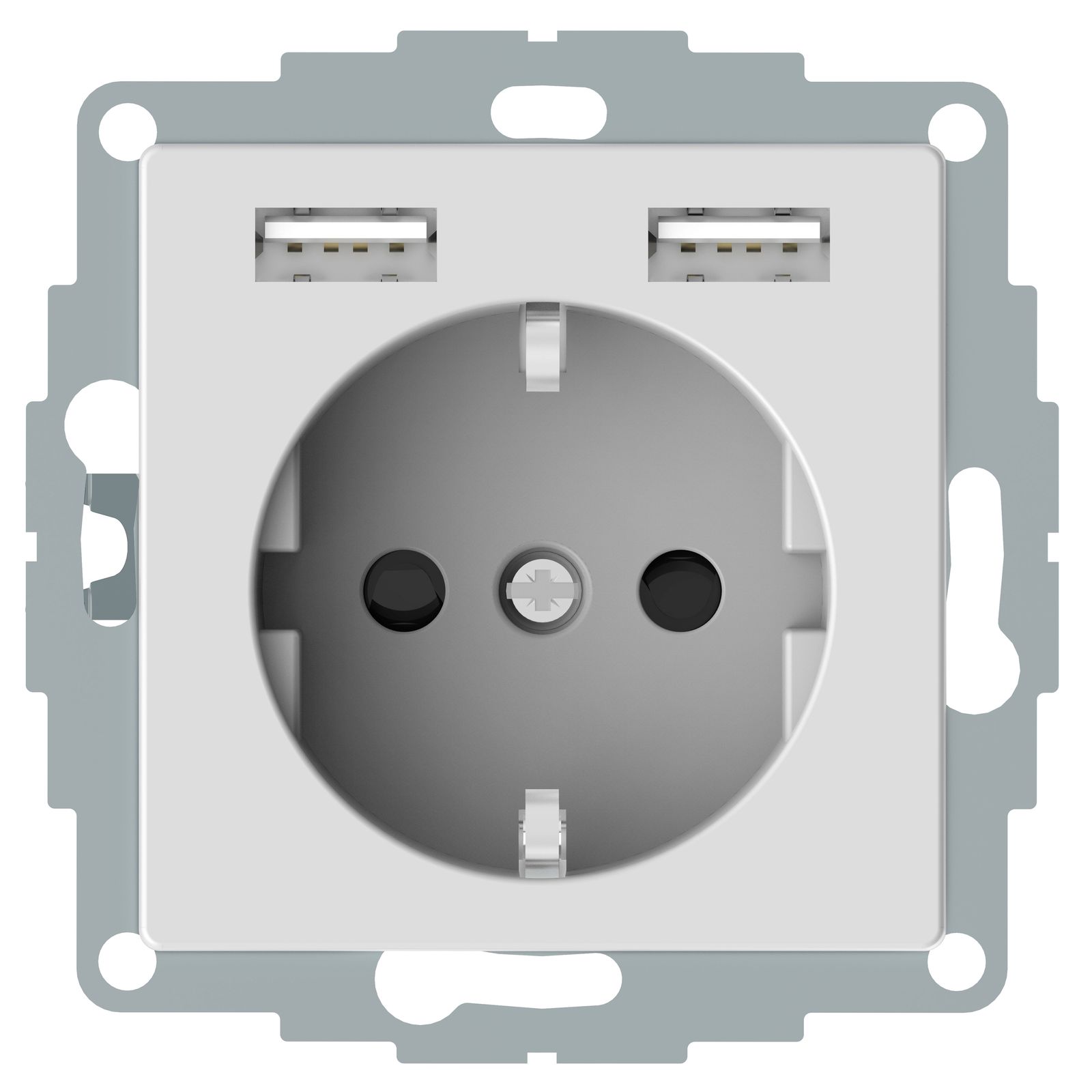 Steckdose 1f polws glz 2USB-A UP m.BS USB IP20 Mit erhöhtem Berührungsschutz| Anschlussart | Schraubklemme |