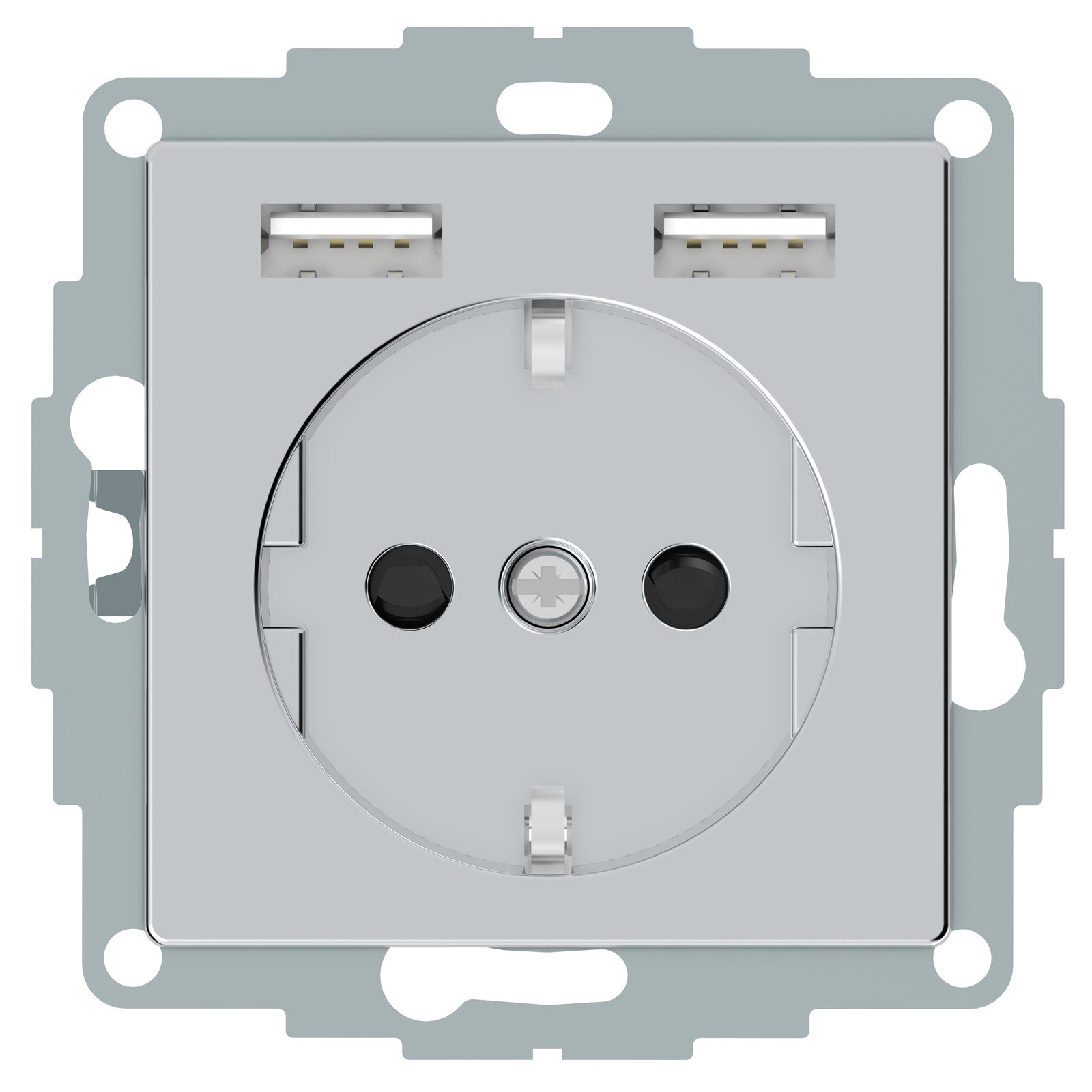 Steckdose 1f alu mt 2USB-A UP m.BS USB IP20 Mit erhöhtem Berührungsschutz