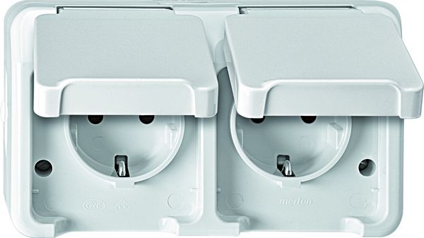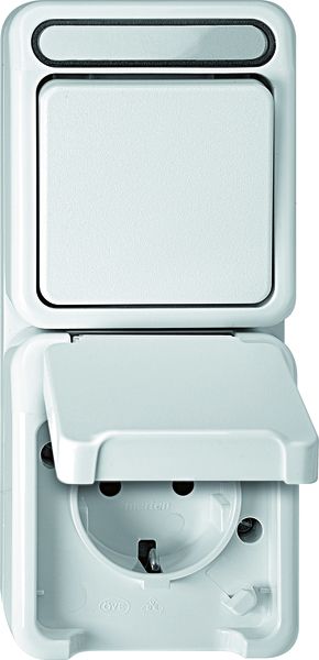 Merten Steckdose 1f polws mt AQUASTAR AP m.BS Klappd Mit erhöhtem Berührungsschutz