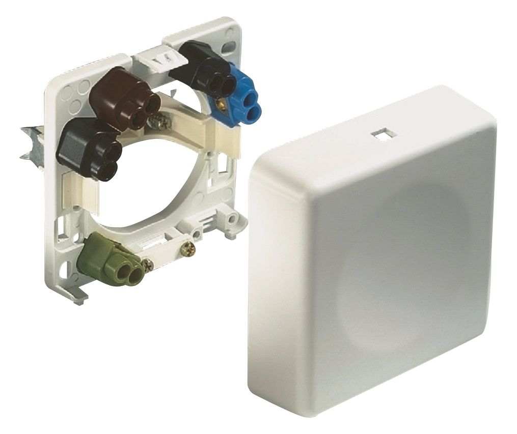 Steckdose SCHUKO mit Steckklemmen, mit voller Abdeckplatte für Einzelmontage 2-polig, 16 A 250 V, mit Verbindungsklemmen nach VDE 0620