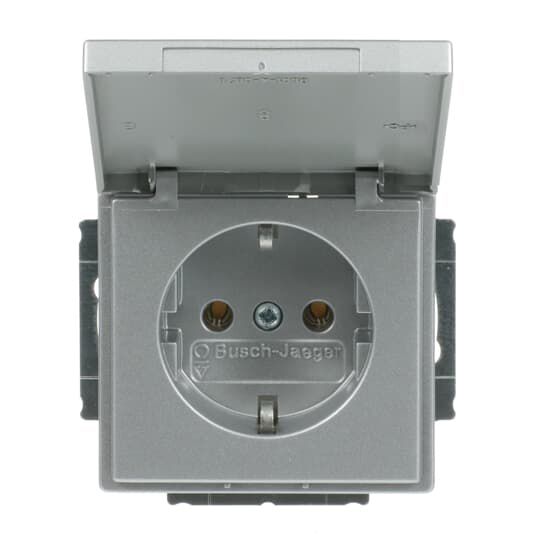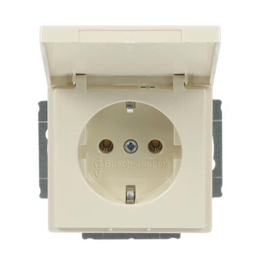 Zum Anschließen von elektrischen Verbrauchern. Klappdeckel arretiert in geöffnetem Zustand. Designlinie: Plattform 63, future linear, Busch-axcent , solo , carat Designlinie Variante: future , future linear, Busch-axcent , Busch-axcent pur