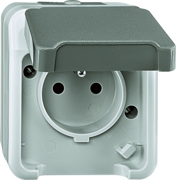 Steckdose 2f lgr mt AQUASTAR AP m.BS Schutzk Mit erhöhtem Berührungsschutz| Anschlussart | Steckklemme |