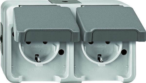 Merten Steckdose 2f polws mt AQUASTAR AP m.BS Klappd Mit erhöhtem Berührungsschutz