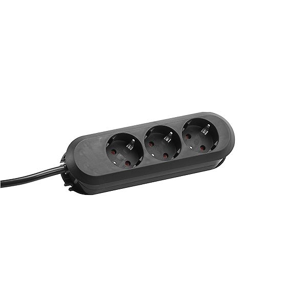 Steckdosenleiste mit Schutzkontaktstecker/Winkelstecker und integriertem erhöhten Berührungsschutz. Kabelaufwicklung, wiederanschließbar. Leitungstyp: H05VV-F 3G1,5 mm². 230 V/ 16 A/ 3600 W. Winkel verdrehter Zentraleinsatz: 35°.