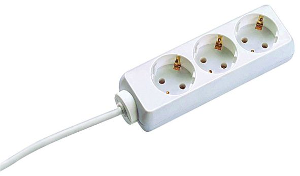 Tischsteckdosen, 3-fach, geschraubt, Prüfzeichen: VDE, 45° versetzt, Zuleitung: ca. 1,50 m 3 G 1,5 mm²