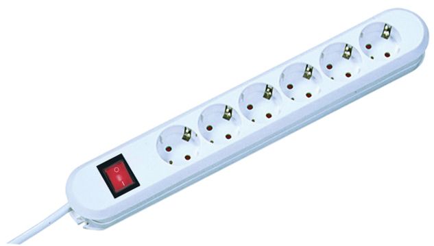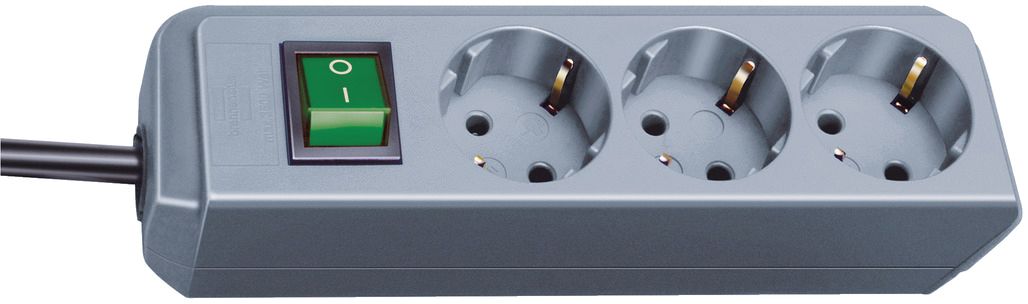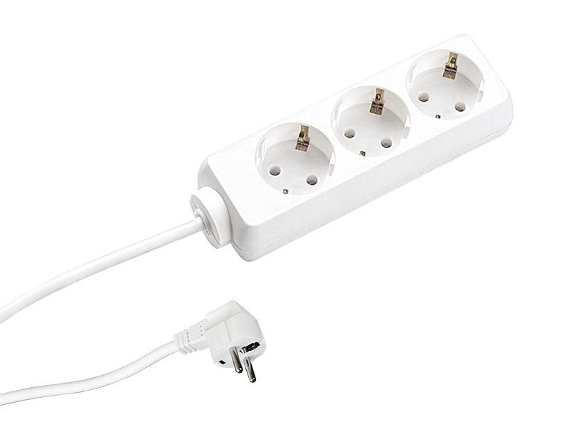 Steckdosenleiste mit Schutzkontaktstecker/Winkelstecker und integriertem erhöhten Berührungsschutz. Leitungstyp: H05VV-F 3G1,5 mm². 230 V/ 16 A/ 3600 W. Mit Schalter. Winkel verdrehter Zentraleinsatz: 45°.