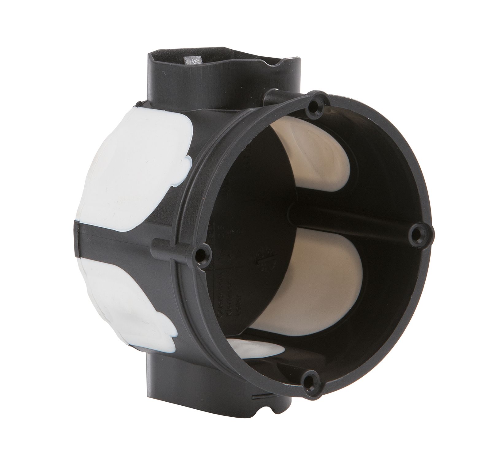Verbindungsdose tief, Montageart: Unterputz, Bauform: Geräte-Verbindungsdose, Ausführung: luftdicht, mit Durchstoßmembranen mit M25 Tunnelstutzen, 4 Lochbefestigung, Ø 60 mm, Tiefe: 60 mm, Fräßloch Ø 82 mm, nach DIN EN 60670, Maße nach DIN 49073, verdrehungssicher durch Rast-Kupplung, Norm-Kombinationsabstand: 71 mm, seitliche Einführungen: 2x11 mm, 2x20 mm, 2x25 mm, senkrechte Einführungen: 2x25 mm, Bodeneinführungen: 2x11 mm, Schraubbefestigung oder Spreizbefestigung, halogenfrei.