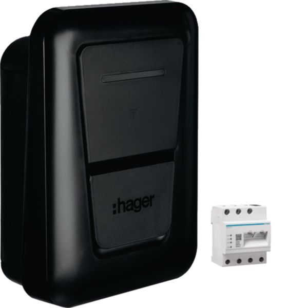 Hager Wallbox 22kVA 3ph witty 1f 22kW/Ladep IP55 250x370x150mm Wandmont Kst IK10