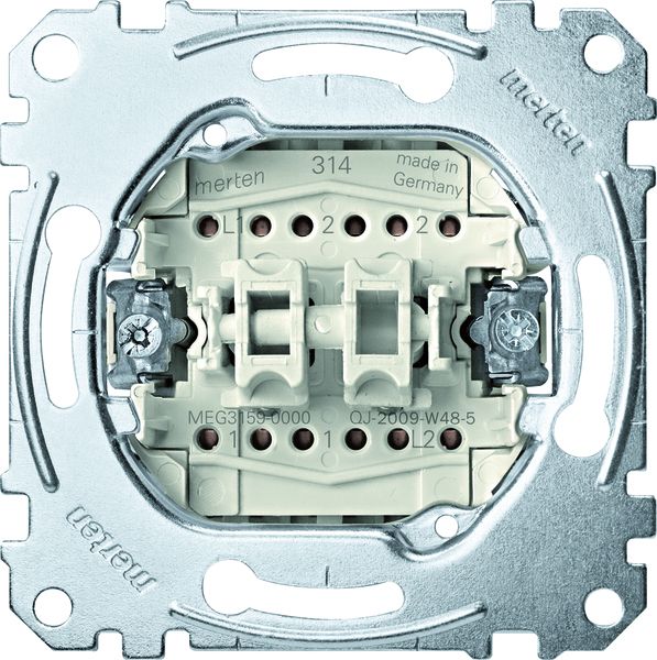 Für Serien-, Doppelwechselschalter- und Doppeltaster-Einsatz. Zu komplettieren mit Schalter und Taster, 2-fach. Material Metall. Farbe Nickelmetallic.
