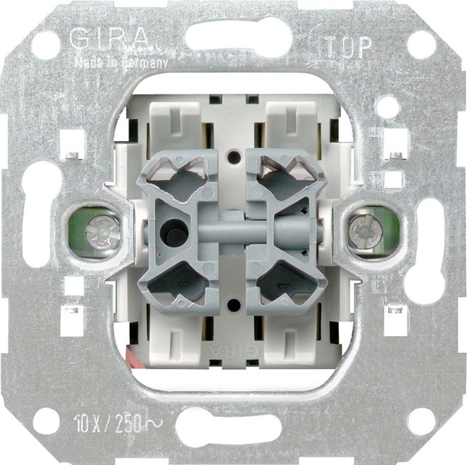 Einsatz Wipptaster 10A 250V~ Schließer 1-polig Merkmale: Schwimmende Schaltwippe bewirkt automatische und präzise Positionierung der Wippe im Abdeckrahmen. Schnellbefestigung (3,5 Umdrehungen pro Befestigungskralle). Einfachere Krallenbefestigung durch robusten Schraubenkopfantrieb PZ1 / Schlitz / PH. Spannungsprüfung von vorn möglich. Einheitliche Abisolierlänge (11mm) für Schalter und Steckdosen sorgt für eine schnellere und effizientere Montage. Verwendbarkeit von starrem und flexiblem Leitergut möglich. Gut zugängliche Lösehebel. Bruchsicherer Thermoplastsockel. Standardmäßig LED-Beleuchtungselemente von vorn einsetzbar. Durch 180°-Drehung des Beleuchtungselementes kann je nach Schalter zwischen Kontrollbeleuchtung und Dauerbeleuchtung gewechselt werden. Hinweise: Auch beleuchtbar anzuschließen. Lieferumfang: