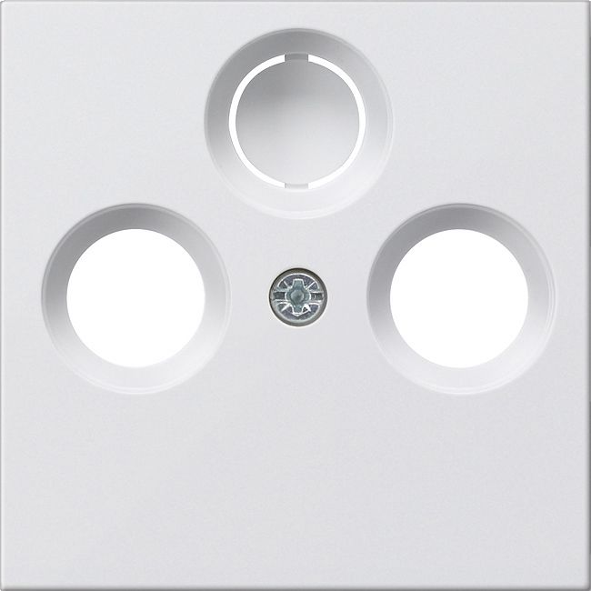 Abdeckung für Koaxial-Antennensteckdose Reinweiß glänzend Merkmale: Drittes Loch ausbrechbar. Hinweise: Lieferumfang: