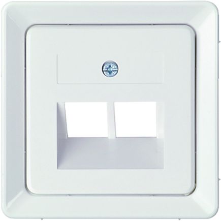 Zentralplatte ohne Schriftfeld für 1x RJ45, geschirmt/ ungeschirmt. Farbe: reinweiß für Einsätze der Fa. Rutenbeck, Artikelnummer 663184, 663188 und 665118 Zentralplatten gerade (parallel zur Wand) für UAE.